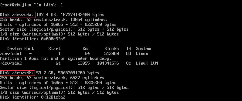 fdisk /dev/sdb 依次输入 n,回车 p,回车 1,回车 回车 回车 w 保存退出!