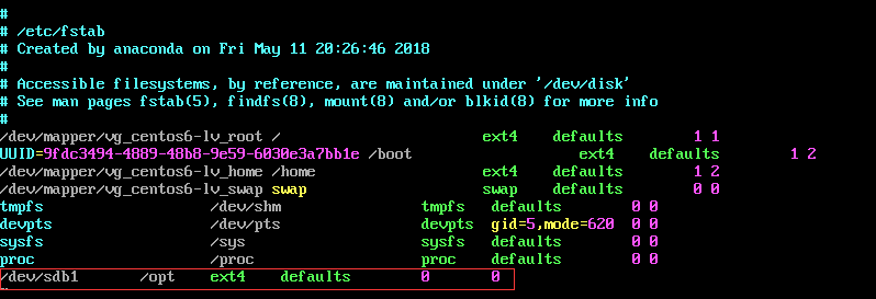 vi /etc/fstab